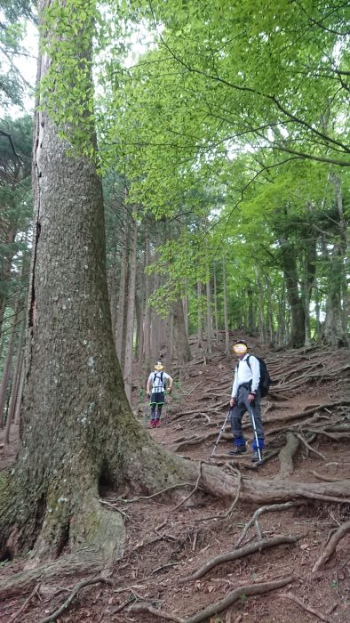 お二人は初対面なので、まずは自己紹介をしつつ舗装された林道をのんびり歩き、良い感じで身体が温まってきたころに登山道に入りました。