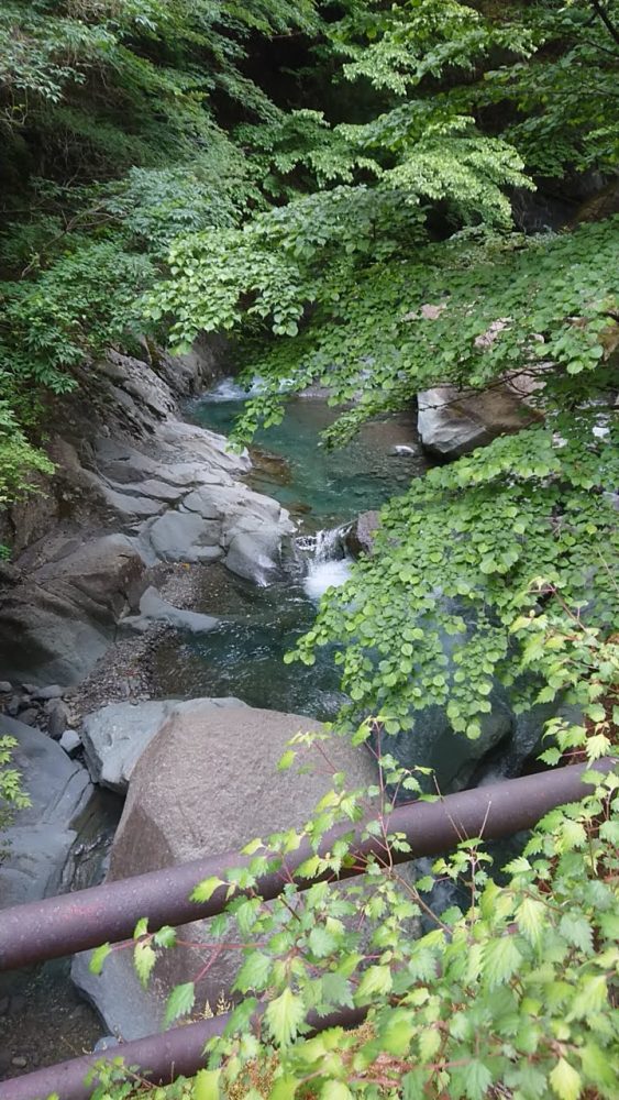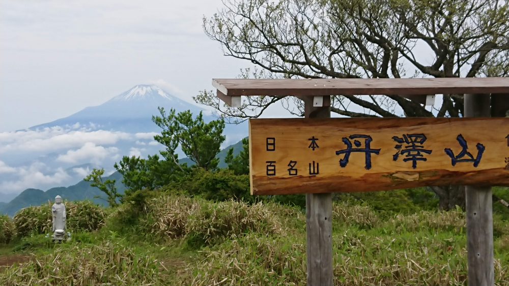 新緑と沢の青流に癒されつつ、途中読図の練習などしながら登っていくと、いつの間にか山頂に。ここ最近の登山ではガスでなかなか見れなかった富士山が見事に出迎えてくれました。